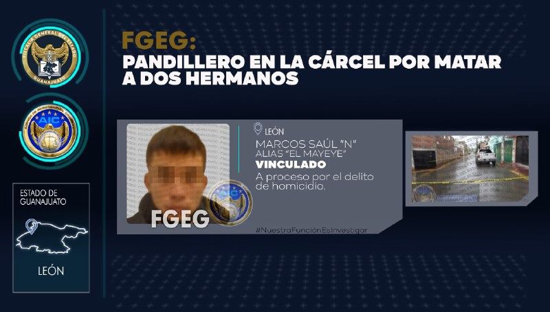 La Fiscalía General del Estado, obtiene vinculación a proceso penal para un pandillero, que mató a golpes a dos hermanos, después de que le reclamaron por robarles.