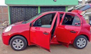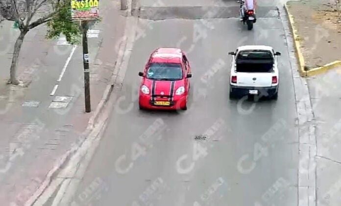 A través de la radio comunicación, los policías recibieron la información y fueron en persecución de un vehículo Nissan March rojo con franjas negras en el cofre.
