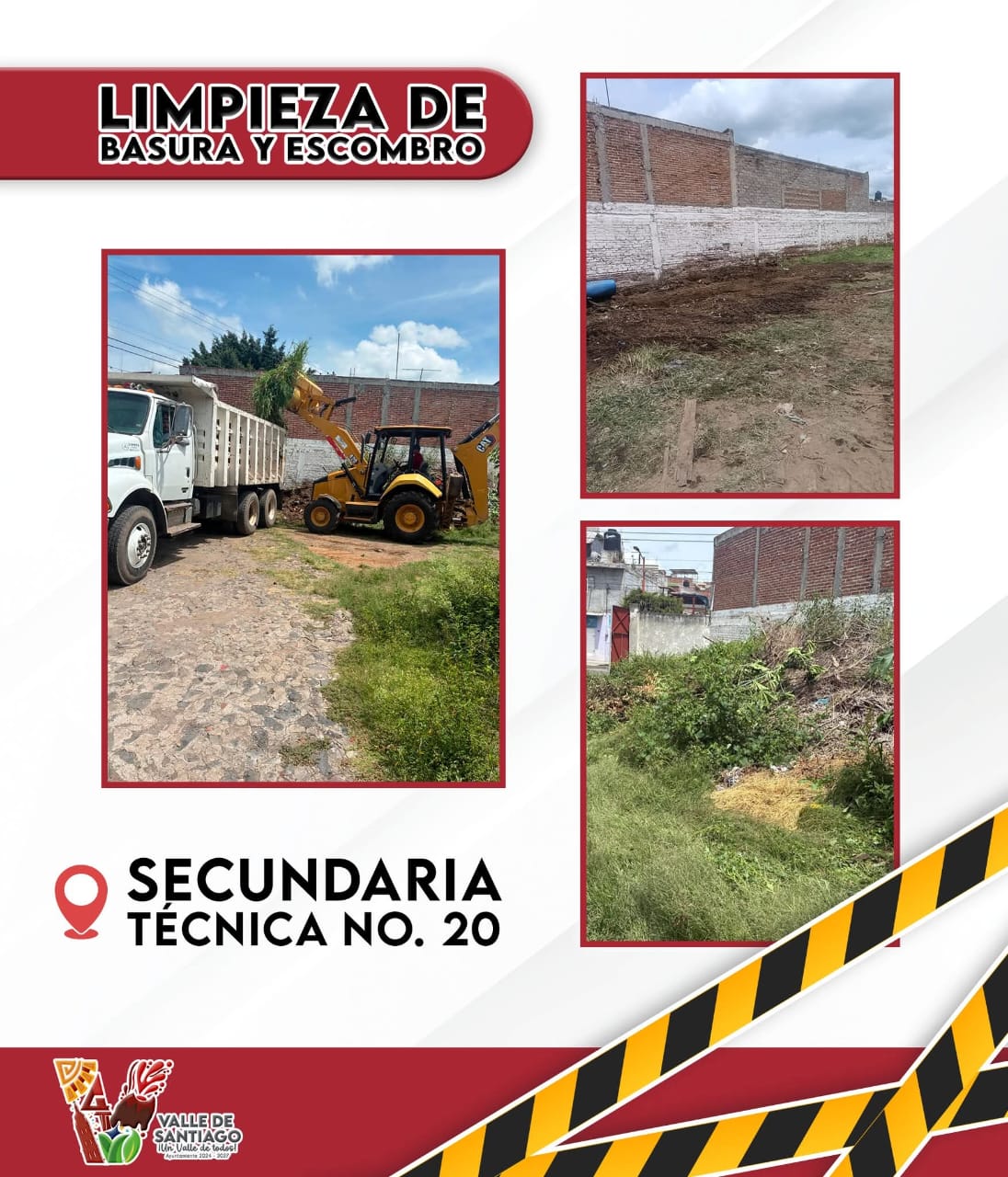 Valle de Santiago Gto .- El Departamento de Parque de Materiales llevó a cabo labores de limpieza de basura y retiro de escombro en la Secundaria Técnica No. 20, contribuyendo a mantener espacios escolares más seguros, limpios y funcionales para el desarrollo de las y los estudiantes.