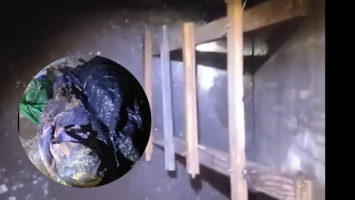 Al llegar y hacer los trabajos de investigación al interior del domicilio, localizaron dentro de un aljibe de una profundidad considerada el cuerpo sin vida y en estado de descomposición de una persona del sexo masculino.