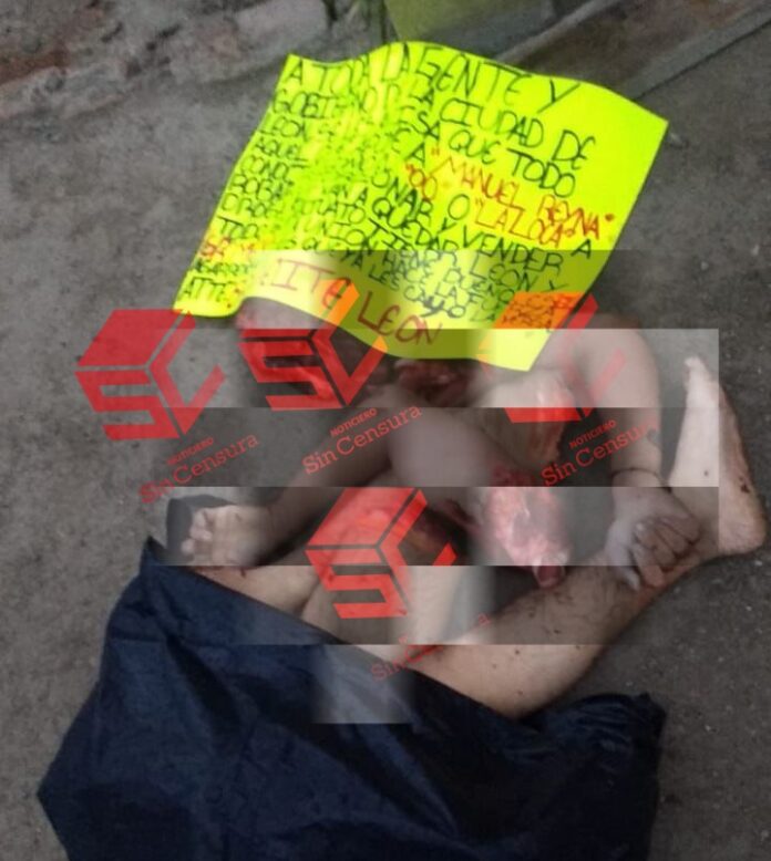 Al lugar arribaron elementos de la policía, tránsito y guardia nacional quienes confirmaron e hallazgo de los restos humanos cercenados así mismo se ubicó una cartulina adjudicada al crimen organizado donde señalaba el motivo del crimen en contra de la víctima .