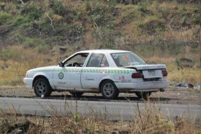 Al lugar se apersonaron elementos de la Policía Michoacán y de la Guardia Nacional quienes localizaron un auto de la marca Nissan Tsuru, del Sitio Máquinas Rojas, marcado con el número económico M-72 y placas X-452-LBA del Servicio Público.