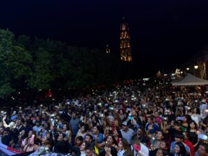 La música fue el eje central de la noche. El ambiente se encendió con la presentación de Los Valedores de la Sierra, quienes lograron que el público coreara sus canciones y disfrutara de un espectáculo lleno de energía y entusiasmo. Posteriormente, el gran cierre estuvo a cargo de La Nueva Sonora Dinamita, agrupación que hizo vibrar la plaza principal con sus éxitos, poniendo a bailar a miles de asistentes y cerrando la velada con un espectáculo de primer nivel.
