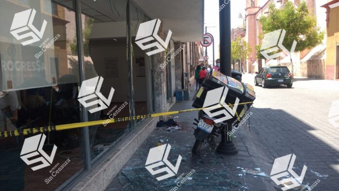 Fue minutos después de la 1:00 de la tarde del lunes que el repartidor de una motocicleta circulaba por dicha zona centro de la ciudad cuando fue impacto por el vehículo y ocasionó que el afecto se estrellará de lleno contra los vidrios de un comercio.