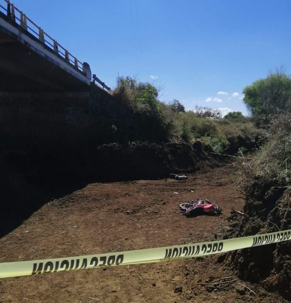 #Panindícuaro, Mich.- Un joven motociclista perdió la vida al caer de lo alto de un puente sobre la carretera que comunica de la cabecera municipal de Panindícuaro a la comunidad de San Miguel Epejan.