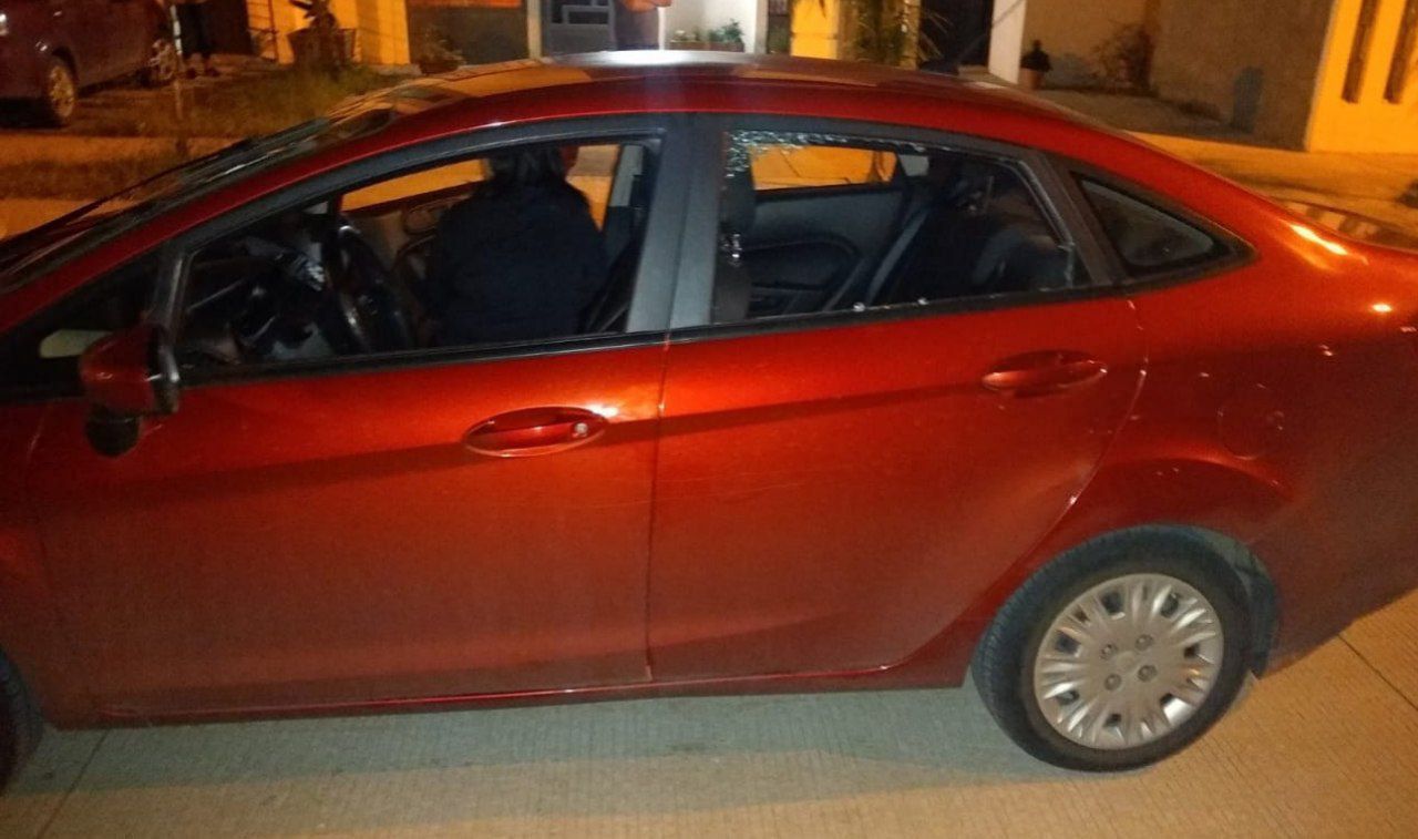 Acusada de causar daños a un vehículo rojo de la marca Ford Fiesta 2018, el cual tenía cristales traseros quebrados.