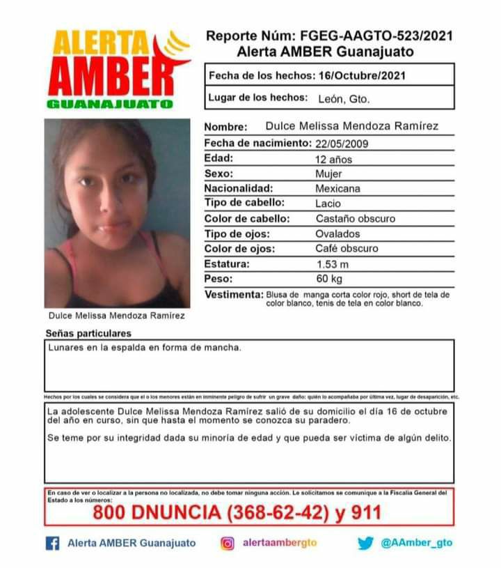 León, Guanajuato. A 11 de diciembre de 2021. En trabajos de investigación e inteligencia de la Secretaría de Seguridad, Prevención y Protección Ciudadana, la Policía de León localizó y aseguró a la menor Dulce ‘N’.
