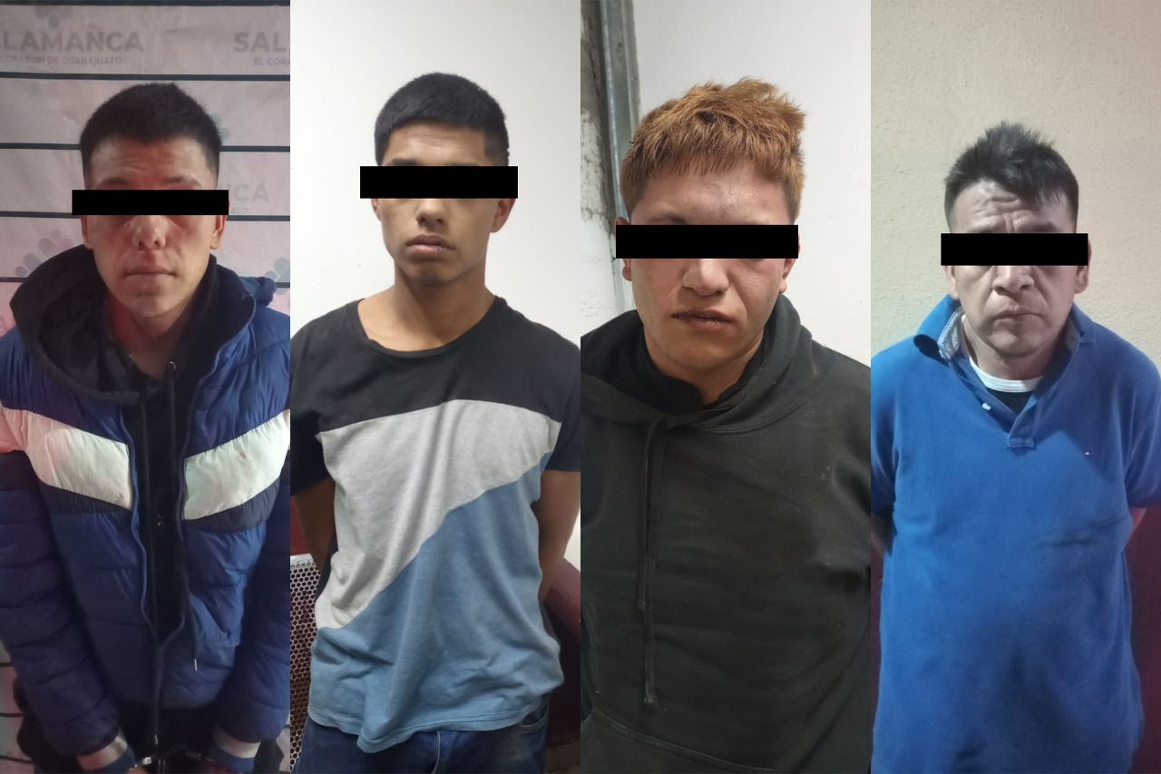 *Salamanca, Gto.-* Elementos de la Policía Municipal de Salamanca lograron la detención de cuatro hombres identificados como; Jonathan N´, Jesús Sebastián N´, Jorge Iván N´ y Miguel N´, quienes presuntamente integraban una banda dedicada al robo de coches y motocicletas.