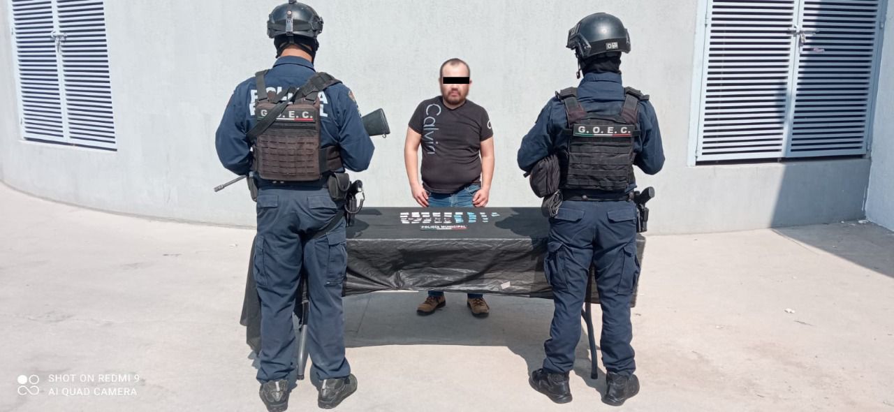 En recorridos de vigilancia y prevención en la colonia Brisas del Carmen, elementos de la Policía Municipal del Grupo de Operaciones Especiales de Celaya (GOEC), detuvieron a un hombre con 40 dosis de presunta droga.