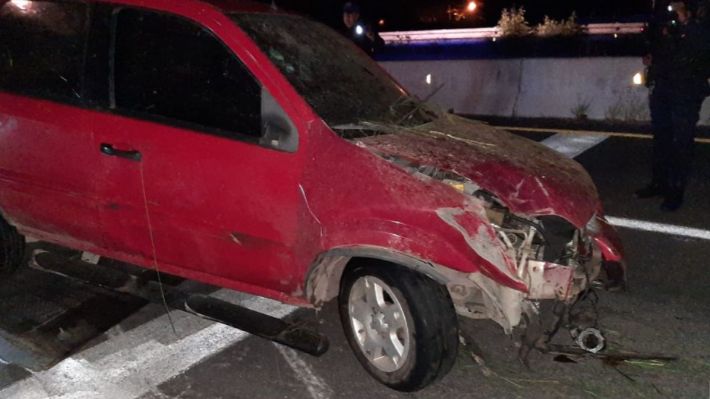 Posterior al accidente, los policías resguardaron la zona y aseguraron la camioneta que al interior llevaba un arma de fuego larga, tipo R-15, con un cargador y 27 balas útiles calibre 223.