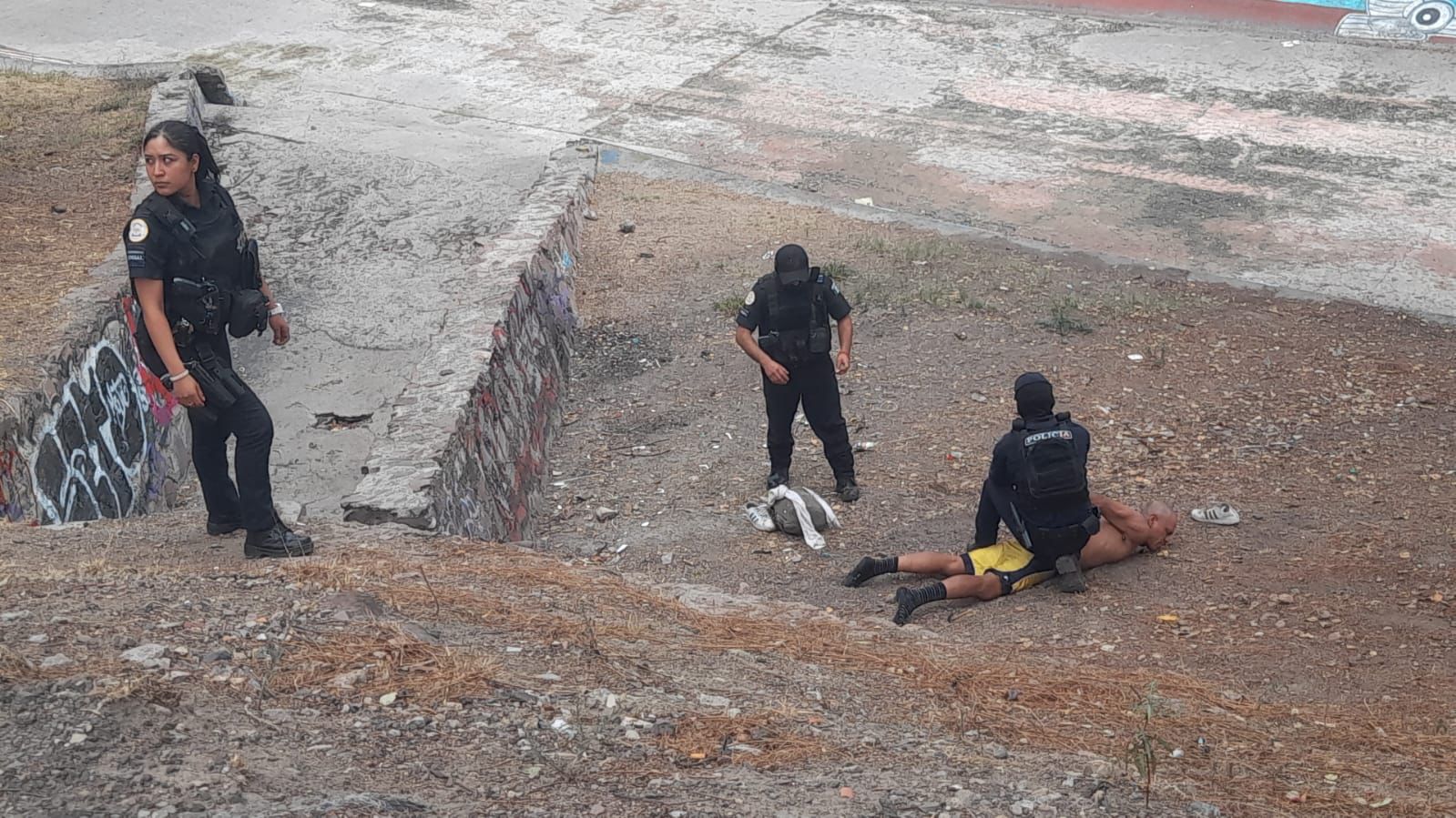 Al lugar arribaron elementos de la policía municipal quiénes al realizar un recorrido por la zona, en efecto localizaron a una persona del sexo masculino escondido debajo de las alcantarillas .