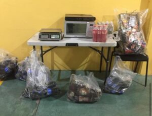Al realizar una inspección, detectaron al interior del automóvil parte de la mercancía de la tienda de abarrotes, así como un horno de microondas, un reproductor de DVD y una báscula digital.