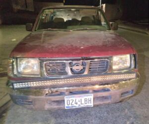 La unidad de Policía Municipal se trasladó al lugar sin encontrar a los sospechosos, al continuar con las labores de búsqueda en diferentes zonas, detectaron un vehículo Nissan Frontier con las características referidas estacionado sobre la calle Camino Viejo a La Estación; tenía placas de circulación del estado de Texas.