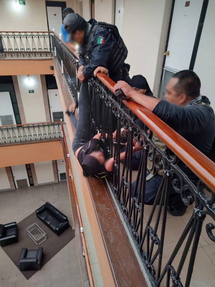 En un rápido actuar por parte de elementos de la Policía Municipal, una mujer fue salvada de arrojarse desde lo alto de un hotel ubicado en la Zona Centro y atendida para recibir atención psicológica.