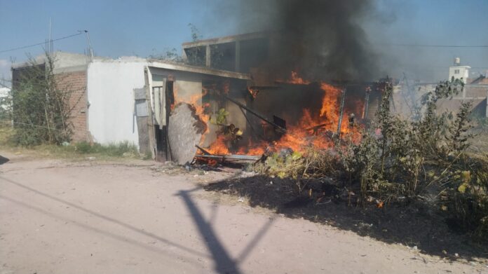 Celaya GTO- El incendio de un pastizal afecto a una vivienda en la colonia Los Felipe dejando daños materiales.