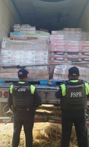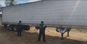 León, Gto., 09 de diciembre de 2021.- Elementos de las Fuerzas de Seguridad Pública del Estado (FSPE) lograron el aseguramiento de una caja de tráiler que se encontraba cargada con siete toneladas de lácteos, la unidad contaba con reporte de robo al momento de su localización.