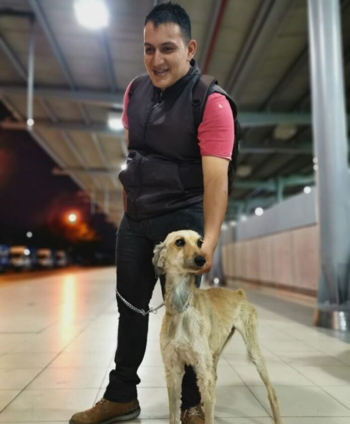 Tras enterarse por redes sociales que Kiara se encontraba en la estación de Portales de Arboleda, resguardada por personal de “Patitas en el SIT”, Eduardo no dudó en contactarlos.