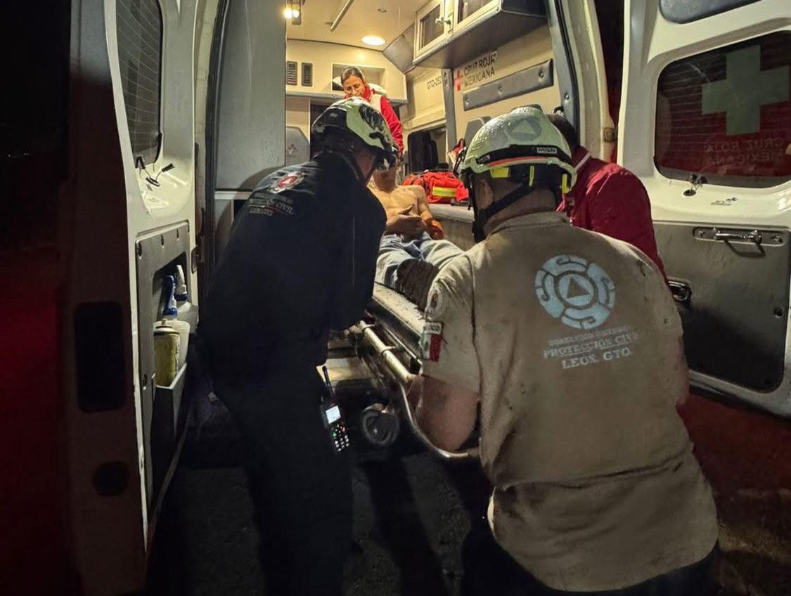 Rescatan a un hombre que accidentalmente cayó a un barranco cerca a la Presa de Otates en Leon.