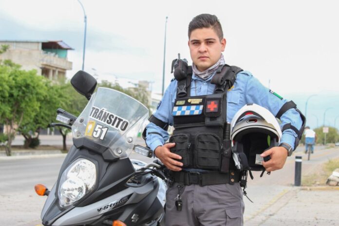 Roberto Carlos Carrión Vargas, tiene un año de pertenecer a Tránsito de León, en el grupo de motociclistas, pero su vocación por servir a los demás le impulsó a ver la manera de llegar de inmediato al reporte de una persona “que se había desvanecido, cuando corría en el bulevar Timoteo Lozano, a la altura del bulevar San Pedro”.