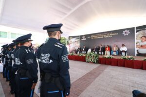 “Los municipios no deben quedarse con mandos únicos, ni con mandos centrales. Las y los Alcaldes deben tener sus propias herramientas y deben contar con su propia policía, parecía un esfuerzo complicado poder contar con una policía propia (…) espero que ustedes sean parte de estas nuevas generaciones de policías que dignifican el nombre de ser policía”, señaló Sophia Huett López.