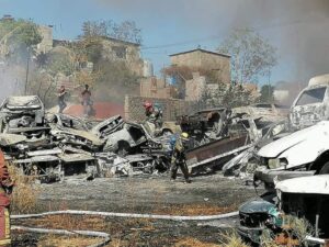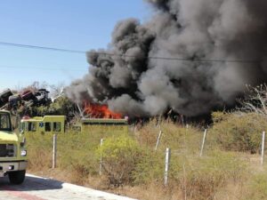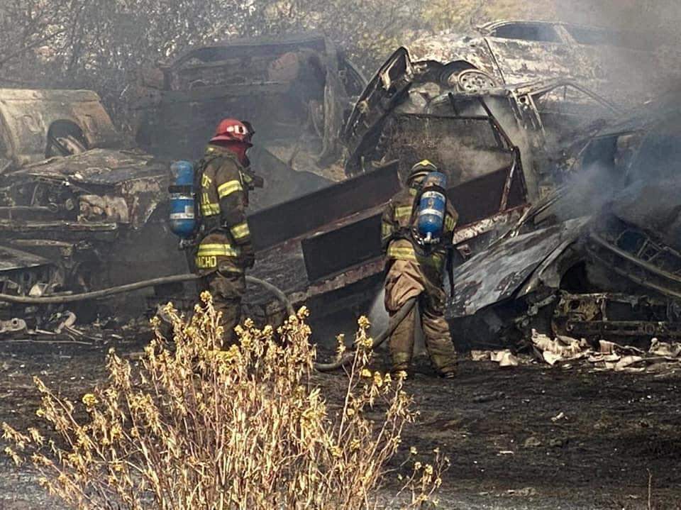 La lumbre calcinó un centenar automotores chatarra y la columna de humo se apreció desde distintos puntos de la ciudad. Los vulcanos atacaron la quemazón con chorros de agua a presión hasta que finalmente la controlaron y la eliminaron de forma paulatina.