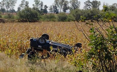 Los policías se trasladaban al municipio de Valle de Santiago para cumplir una diligencia en el Cereso Mil, cuando aparentemente una de las llantas tronó y la unidad volcó.