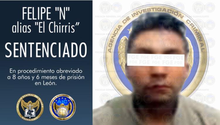 León, Gto. 14 de abril de 2021. – En procedimiento abreviado, la Fiscalía General del Estado obtuvo una sentencia de 8 años y 6 meses de prisión para Felipe “N”, alias “El Chirris”, culpable de privar de la vida a un hombre el día 07 de abril del año 2019, en la colonia San Felipe de Jesús.