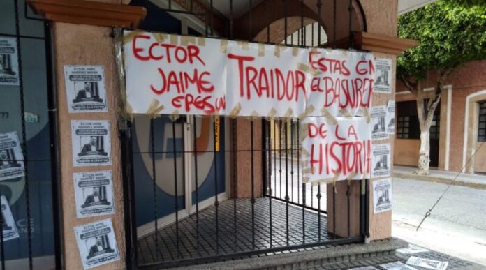 Tapizan con leyendas de «Traidor a la Patria», casas de gestión de diputados federales del PAN en León.