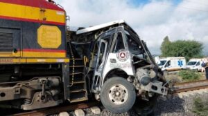 TREN CARGUERO EMBISTE CAMIÓN DE PASAJERO; HAY SEIS PERSONAS SIN VIDA Y AL MENOS 15 LESI0NADOS..