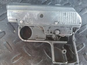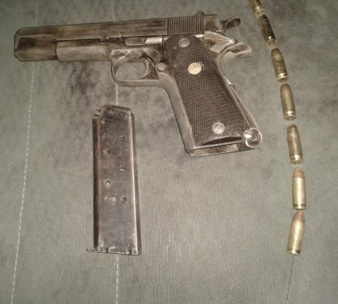 Al ser revisado para evitar fuertes de peligro, se le localizó un arma de fuego tipo escuadra, un cargador y 7 cartuchos.