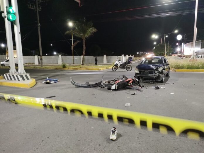 Trascendió que dos hombres que iban a bordo de una motocicleta Cross marca Italika en color negro con anaranjado presuntamente se pasaron el alto y se impactaron contra un vehículo Renault color azul marino.