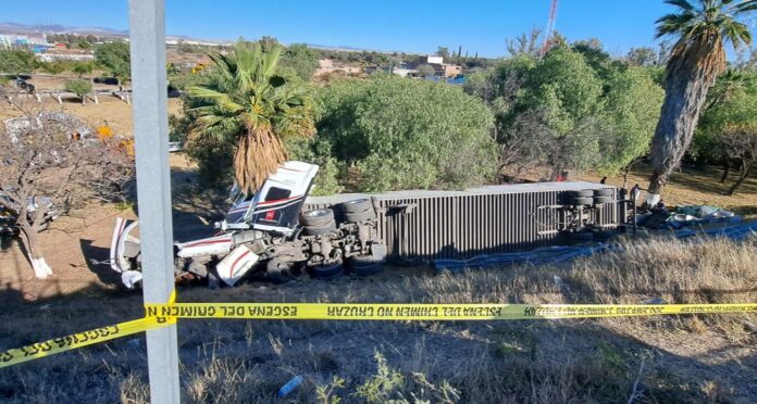 Silao, Gto.- Un bebé de apenas dos años de edad murió luego de que el vehículo en el que viajaba junto a su familia fuera arrastrado por un tráiler que cargaba toneladas de autopartes el cual volcó a un costado de la carretera federal entronque Silao-Guanajuato cerca del trébol.