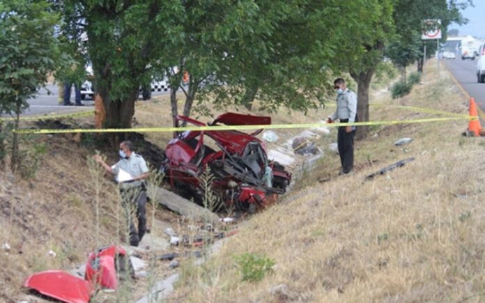 Las víctimas son una pareja, quienes se trasladaban a bordo de un coche de la marca Renault Clio, color rojo, con placa PFP371G, el que se salió de la carretera y se estampó contra un árbol del camellón, causando con ello la muerte de la mujer.