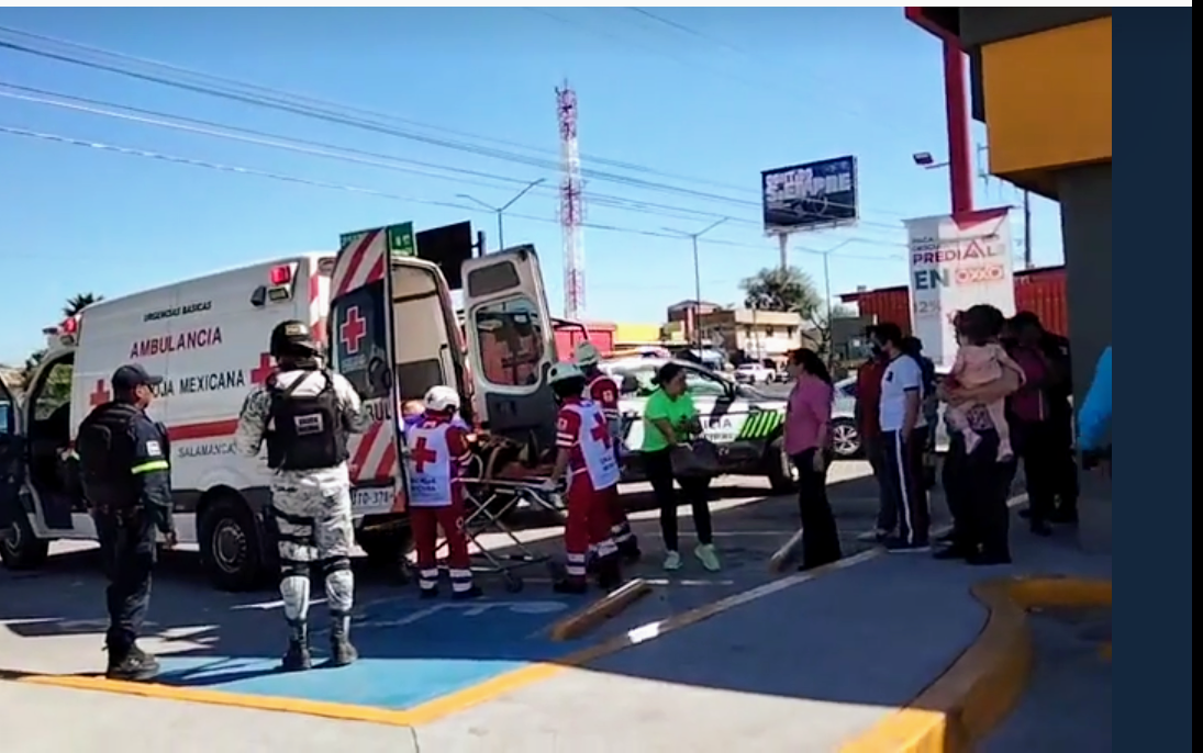 Policías municipales apoyados por elementos de la Guardia Nacional, atendieron el reporte y en el lugar de los hechos, al interior de una tienda de conveniencia, ubicada en la esquina del acceso a la Central Camioneta y la Avenida Valle de Santiago, encontraron a una persona del sexo femenino, quie presentaba una lesión producida por proyectil de arma de fuego en su pierna derecha.