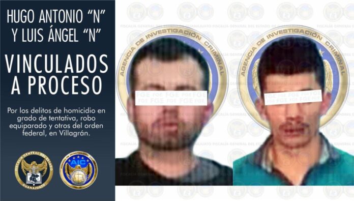 Villagrán, Gto. 04 de marzo de 2021.- La Fiscalía General del Estado obtuvo vinculación a proceso en contra de Hugo Antonio “N” y Luis Ángel; se encuentran en prisión preventiva por los delitos de homicidio en grado de tentativa y robo equiparado, y puestos a disposición de la autoridad federal por lo que hace a los delitos de portación de armas de fuego y cartuchos de uso exclusivo del ejército armada y fuerza aérea previsto y sancionado por la Ley Federal de Armas de Fuego y Explosivos.