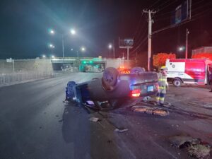 De acuerdo a los reportes de las autoridades de tránsito los hechos se registraron al filo de las 3:30 de la madrugada de este lunes cuando se alertó al 911 sobre un accidente tipo volcadura a la altura del bulevar José Maria Morelos esquina Isaac Newton en Fracciones de Echeveste .